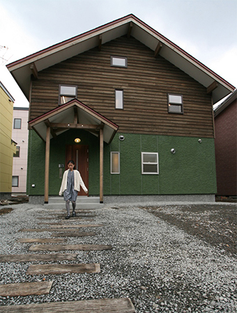 唐松と色モルタルの外壁は自然な風合い