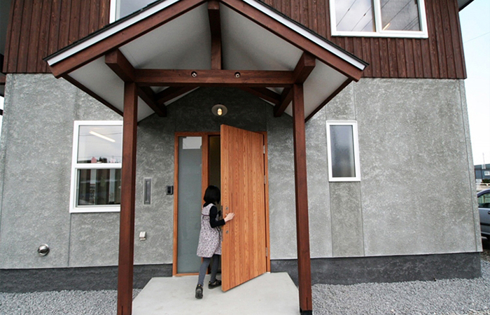 「ただいま」は木のドアから