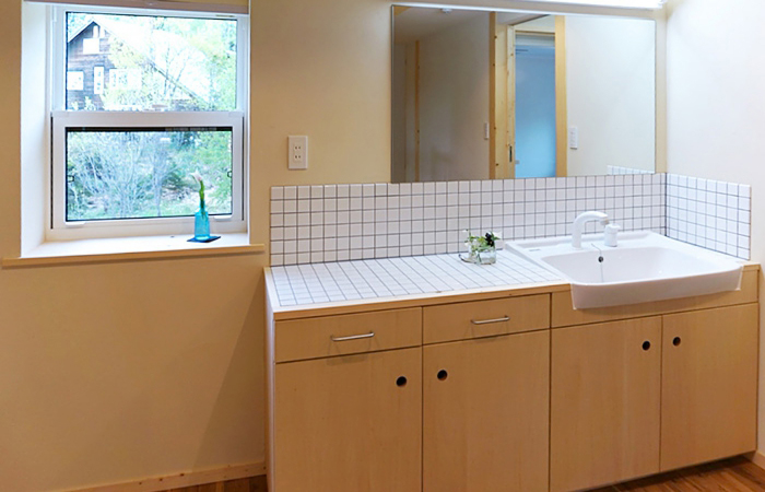 実家が見えるタイルの洗面台