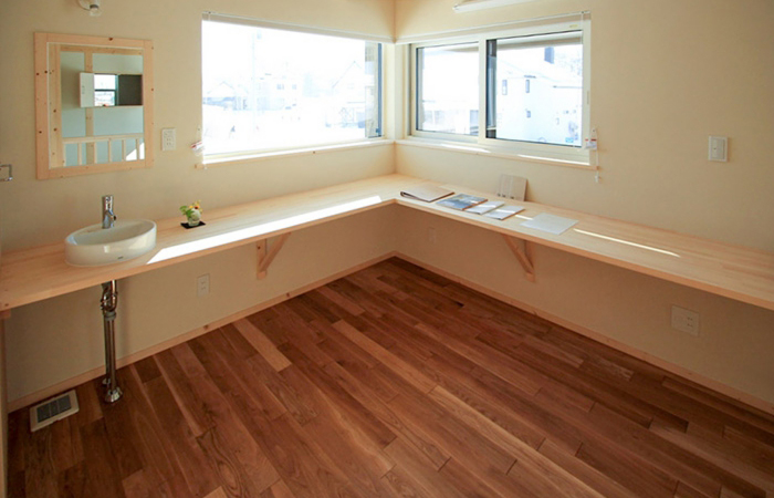 広い洗面台は機能的