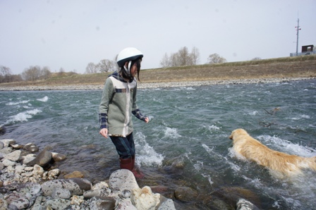 河原の北側斜面にはまだ残雪も残っていますがズングリの川流し始めました。毎日川で泳がせればシャンプーいらずでサラサラに保てます。