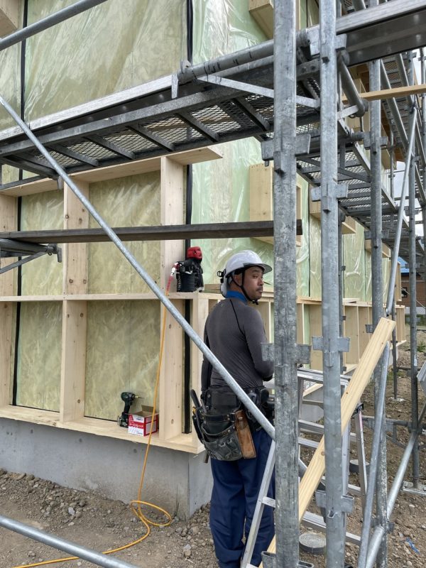 窓枠を組んでからそれに接合させるように210mm厚の付加断熱下地を作っていき、壁厚が300mmを超えます。