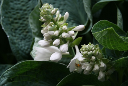葉っぱの大きさの割に地味な花ですがそこがいいのかも知れません、葉の色と形がいいですから。