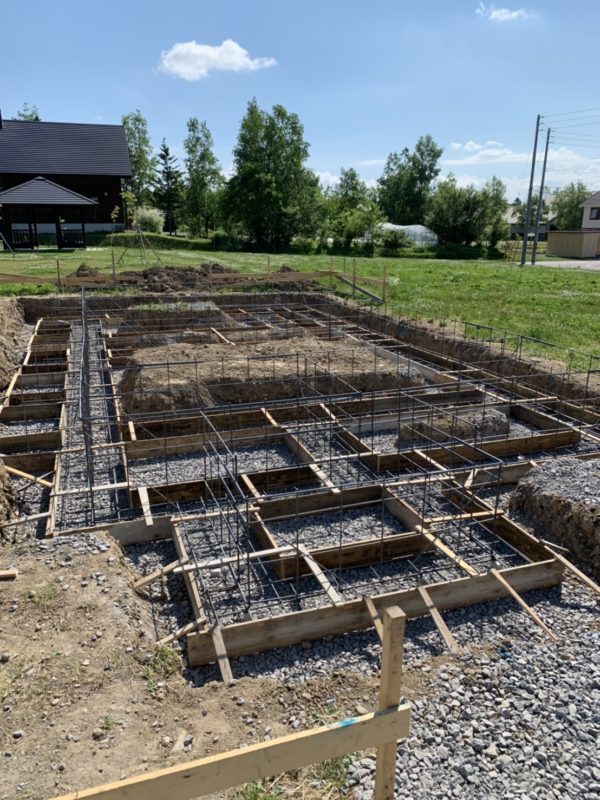 基礎のコンクリートを打つ前に鉄筋を組んでおきます。