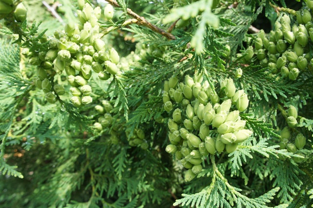 庭木のニオイヒバが実をつけました、これを蒔いて苗を育ててれば垣根ができるのだろうか?