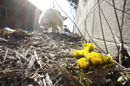 今日は1日晴れて気温も上がったのでやっと我が家の福寿草が咲きだしました、去年は4月1日に咲いていたので2週間近く遅いですね。