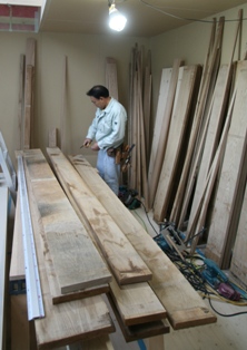 12345678910111213仰々しく箱から出してきものは、たくさんの固定金具と調節機能の付いた優れものの定規です、家具工場のような精度での加工はできなくても大工は大工なりの技術と道具を使って現場加工での最高の物を作ろうと頑張っています。