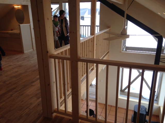 今回の完成見学会にも沢山の皆様のご来場を頂き本当にありがとうございました。引き続き大工さん達と反省会です、綺麗に仕上がった家をそれを手掛けた大工さんが見る機会は実はあまりありません、それでは発展が無いと思い今年からすべての完成物件をみる機会を持つことにしています。
