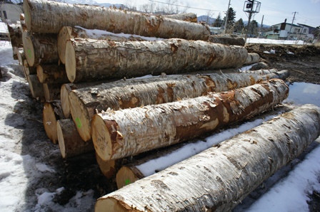 道産の針葉樹である唐松やトドマツの活用は進んでいますが、広葉樹である白樺やシナの木の利用は限られていて特に白樺は製紙用のチップぐらいにしかなっていませんでしたが、芦別にある工場で白樺合板やシナ合板をつくっています。いわゆるランバー合板でもなく、芯まで全部シナや白樺を使って木口(切り口)もきれいな高級内装材に使われるものです。もちろん針葉樹を使った構造用合板とは全く用途の違うものです。